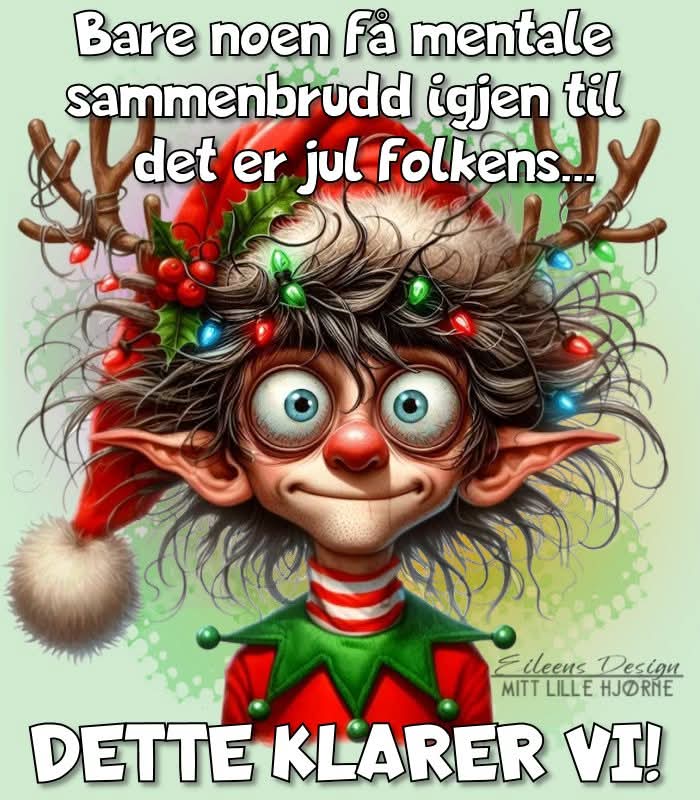 For midt i kaoset, i rotet, i stresset og de halvt mislykkede juleforberedelsene, skjer det noe fint. Vi fortsetter. Vi gir ikke opp. Vi kommer oss gjennom. Med bustete hår, rare løsninger og kanskje et par mentale sammenbrudd på veien.