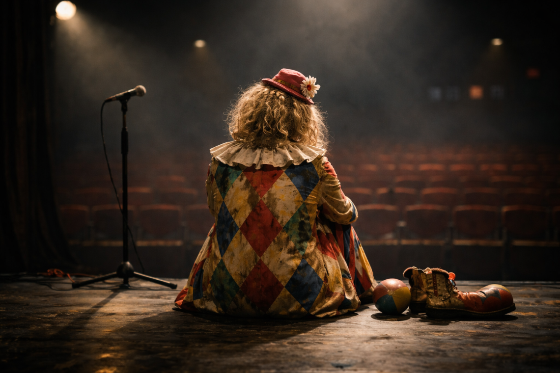 Jeg tenker på linjen til Jan Teigen: «klovn uten scene». Den rommer mer enn man først tror. For en klovn uten scene er ikke nødvendigvis en som mangler humor, men en som har valgt å holde den igjen. Kanskje fordi scenen ble trang. Kanskje fordi applausen ble usikker.